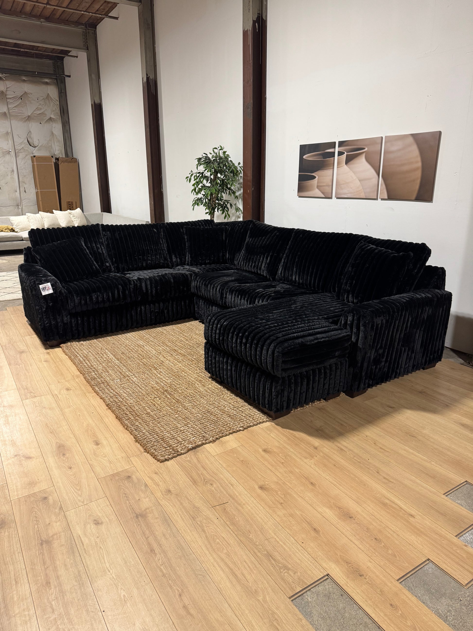If you’ve been looking for a big, comfortable sectional that actually feels good to sit on, this is my Monroe model. It’s a 3-piece setup with upgraded, thicker cushions and deeper seating, so it’s the type you sink into and don’t want to get back up from.